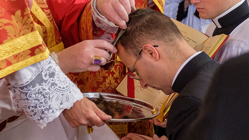 Nach der Predigt vollzog er die Tonsur als Zeichen zur Einführung in den geistlichen Stand. Bis zum Pontifikat von Papst Paul VI. war sie das Eingangstor zum Empfang der heiligen Weihen. Die Tonsur ist von bleibendem spirituellen wie pädagogischen Wert, weshalb die Petrusbruderschaft diese Tradition fortführt. Der Bischof ergreift dabei eine Schere und schneidet den einzelnen Kandidaten einige Haare in Kreuzesform ab. Nach einem Segensgebet folgte die Einkleidung mit dem Chorrock: seine weiße Farbe symbolisiert die Makellosigkeit des Taufkleids, die die Kandidaten bewahren sollen.