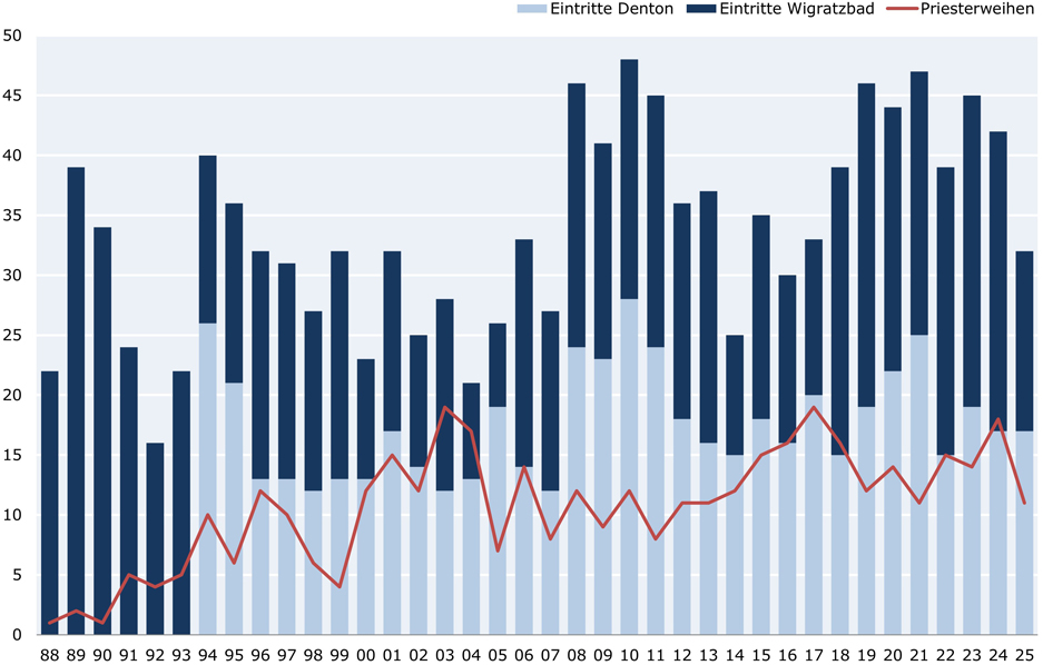 Aktueller Stand (1. November 2025): Wigratzbad 15 | Denton 17 | Neupriester im Jahr 2025: 11