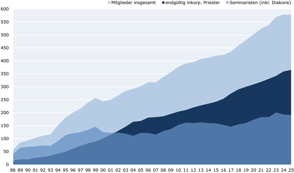 Aktueller Stand (1. November 2025): Mitglieder gesamt 579 | Endgültig inkorporierte Priester 394 | Seminaristen 192